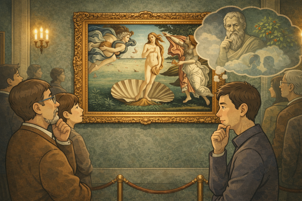 実は《ヴィーナスの誕生》は、単なる神話のワンシーンではなく、人間の美や愛、そして精神的な成長を象徴的に表現した作品だと考えられています。