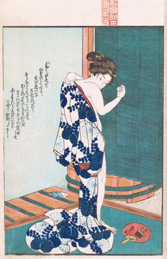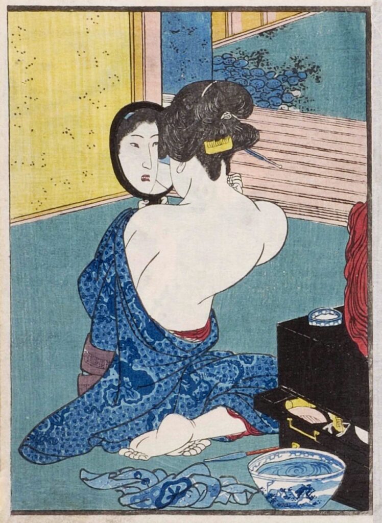 • 渓斎英泉:遊里絵の名手。香の具や紅皿など小物づかいに洗練が光る。