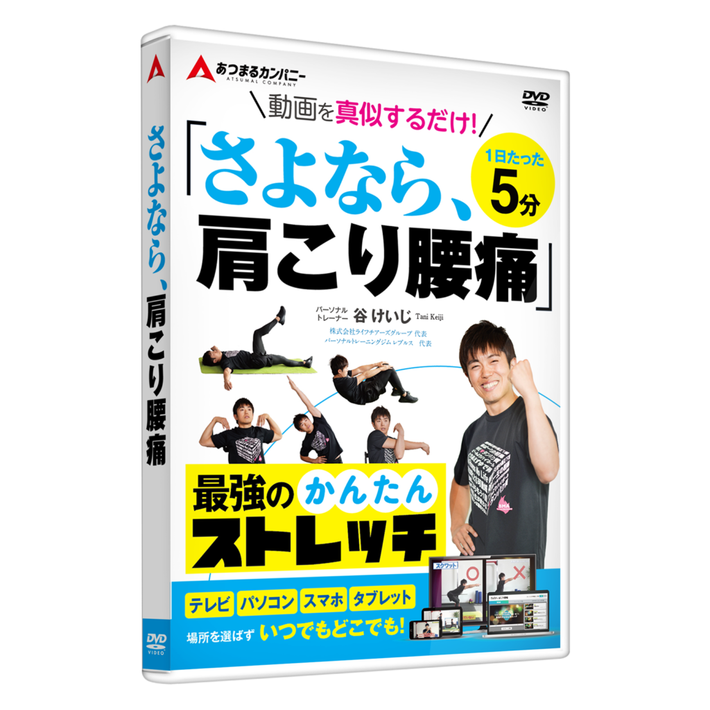 「さよなら、肩こり腰痛」5/14より販売開始 2020.05.14プレスリリース 谷けいじ監修・実演 「1日5分たった3日」で効果が実感できる!動画を真似するだけで誰でもかんたんに「肩こり」「腰痛」改善に取り組める谷流最強のかんたんストレッチメソッドです。 製品の詳細につきましては以下のページへ! さよなら、肩こり腰痛