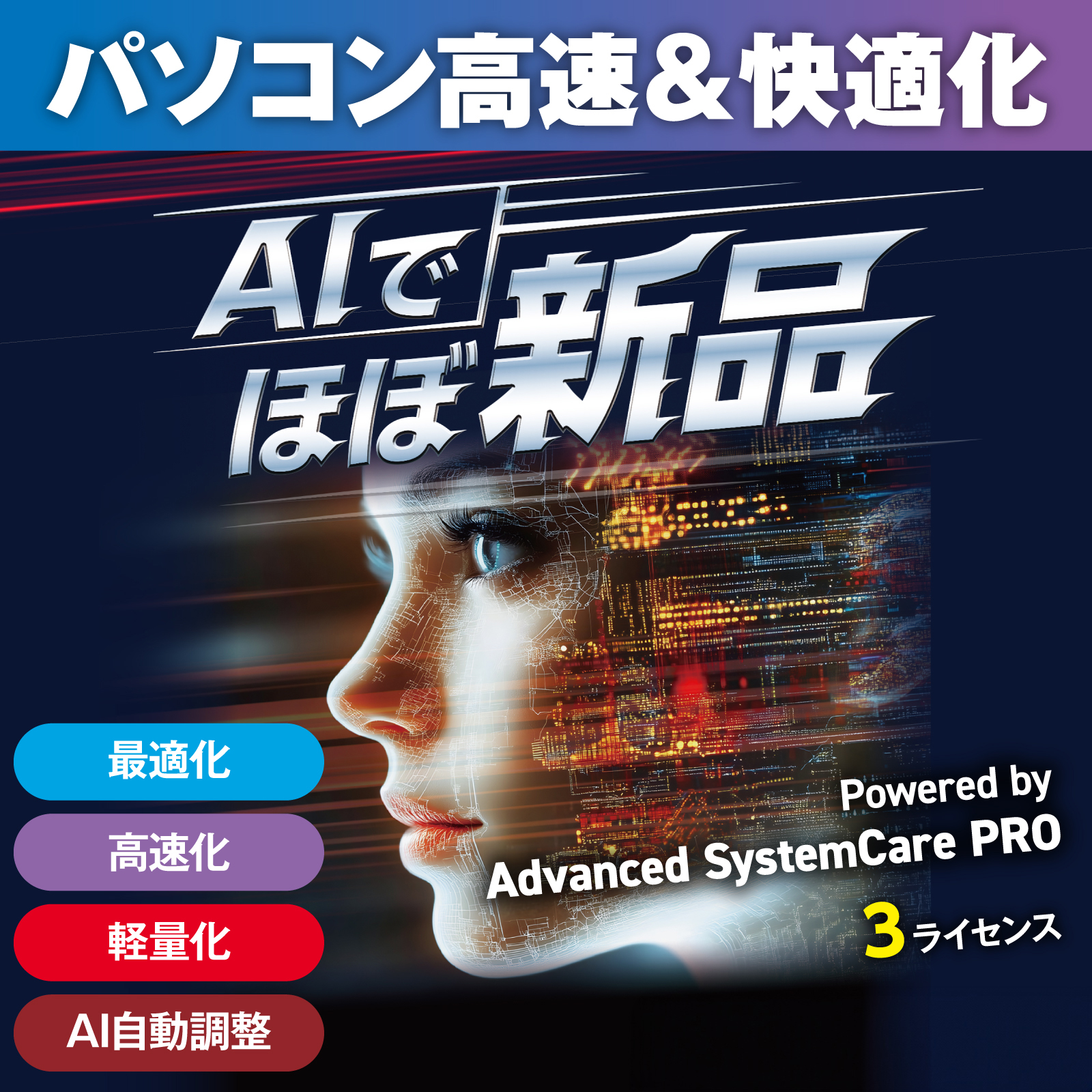 - 【世界で使われている実績】 Advanced SystemCareは、世界220以上の国と地域で、2億5,000万人以上が利用しているPCメンテナンスソフトです。長年にわたりパソコン高速化や動作改善の分野で多くのユーザーに選ばれてきた実績をもとに、日本向けに使いやすくしたのが「AIでほぼ新品」です。