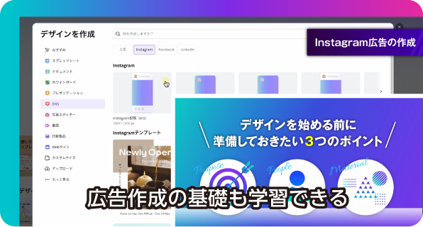 もうデザインに悩まない。Canvaの基本操作から、AI・広告・資料作成・共有方法まで、仕事で“本当に使える”テクニックを2時間57分で学べます。見やすく、伝わり、成果につながるデザインを目指す方に。