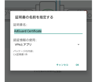 Android版をインストールしたのですが、「証明書の名前を指定する」の画面から進めない。