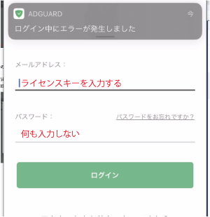 マイページへのログインにつきましては、はじめにAdGuard社の公式ページにてマイ・アカウントを作成する必要があります。
